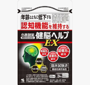 そんな方をサポートする栄養補助食品が、小林製薬の『健脳ヘルプ EX』です。本製品の成分は「フェルラ酸・クルクミン・大豆由来ホスファチジルセリン」となっています。